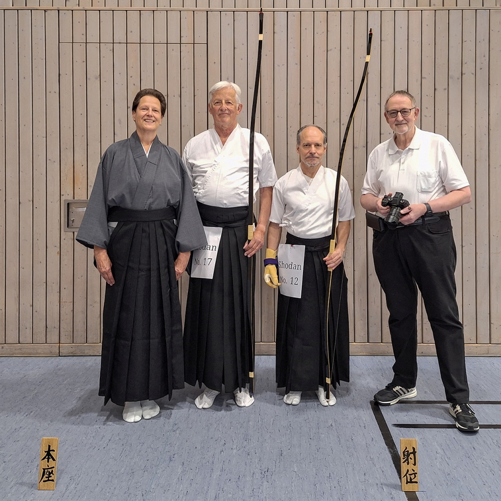 Nachdem für dieses Jahr Seminare und Prüfungen auch für Anwärter zum 1. und 2. Dan in Magglingen angeboten wurden, gingen wir davon aus, dass die Video-Shinsa der Vergangenheit angehört.  Völlig überraschend erreichte uns dann aber Anfang Juni die Ausschreibung für die Video-Shinsa 2025. Diese Gelegenheit nutzten wieder einige bayerische Kyudoka, um einen weiteren Schritt auf ihrem Weg des Bogens zu gehen. Im September wurden die Videos in den Vereinen aufgezeichnet und zusammen mit den Antworten zur schriftlichen Prüfung über den DKyuB nach Japan übermittelt. Dort wurde alles gesichtet. Nun kamen die Ergebnisse: Alle Teilnehmer haben bestanden. Wir gratulieren herzlich zu den neuen Graduierungen: