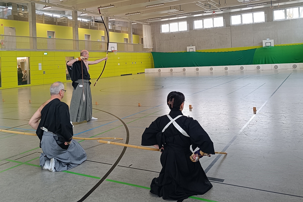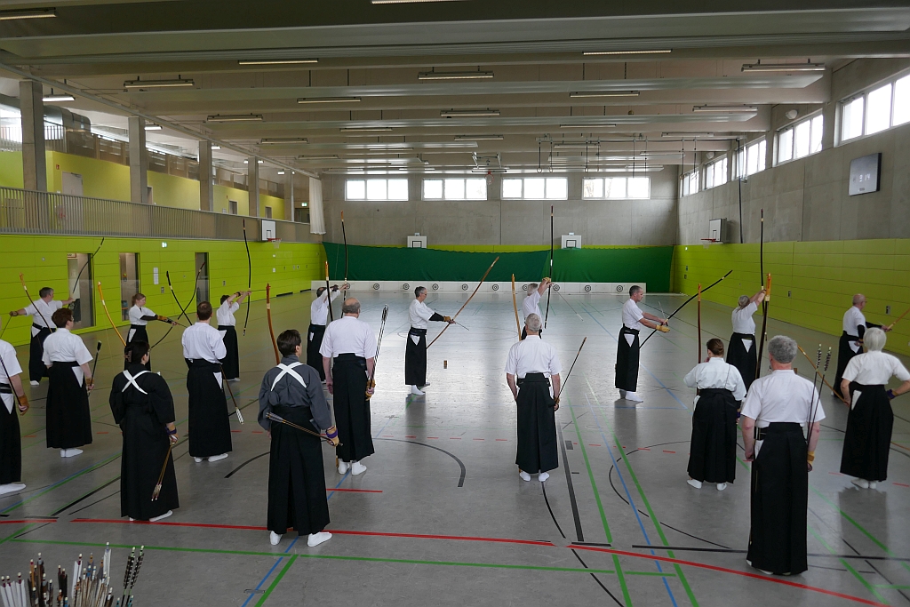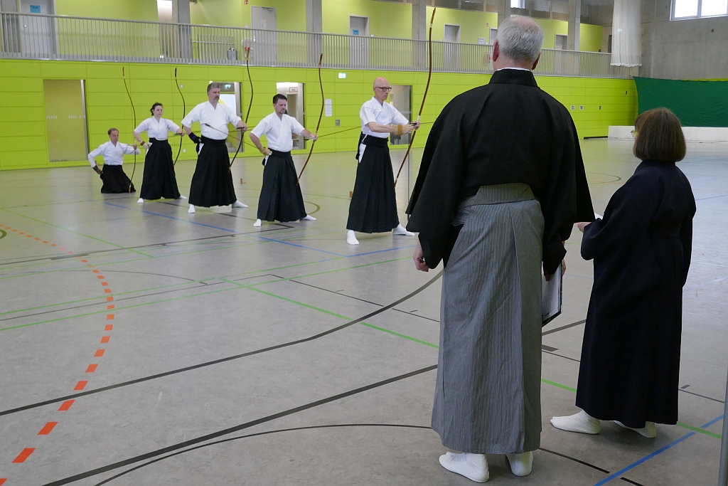 Mitte April finden in Frankfurt/Main Prüfungen zum 3. bis 6. Dan und Renshi statt. Daran werden ca. 200 Schützinnen und Schützen aus Deutschland teilnehmen. Für eine optimale Vorbereitung gibt es derzeit viele Seminare. So fand vergangenes Wochenende ein Bundeslehrgang im oberbayerischen Ingolstadt statt. Aufgrund des großen Interesses war ein paar Tage, nachdem die Ausschreibung verteilt wurde, die maximale Teilnehmerzahl bereits erreicht. So wurde nach Rücksprache mit den Lehrern Ingrid Haußner und Marco Zingsheim die Teilnehmerzahl auf 30 erhöht und der Beginn des Lehrgangs am Samstag um eine Stunde vorverlegt.